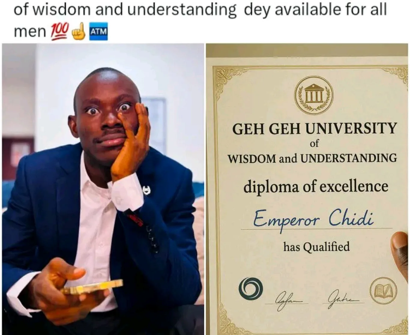 Gehgeh university was established by Emmanuel Obruste to educate particularly the young men on how to spend money on their girlfriends